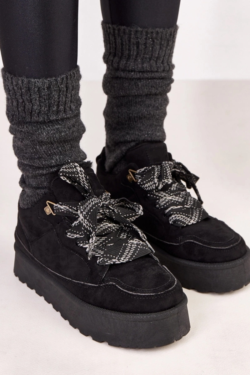 Schwarze warme Sportschuhe mit dicken Schnürsenkeln Landry