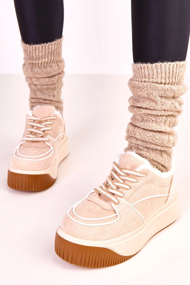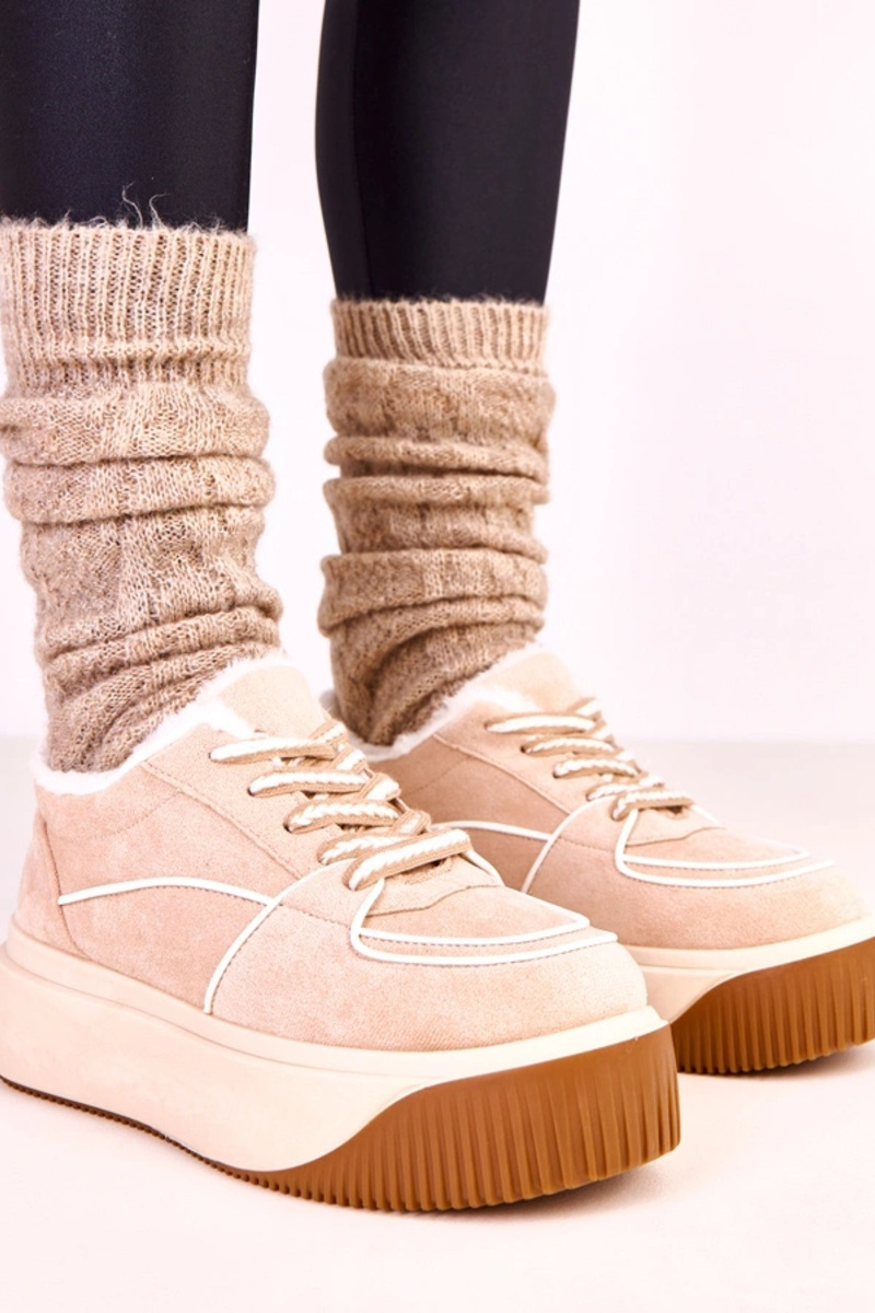 Sandfarbene warme Sportschuhe auf Plattform Vargas