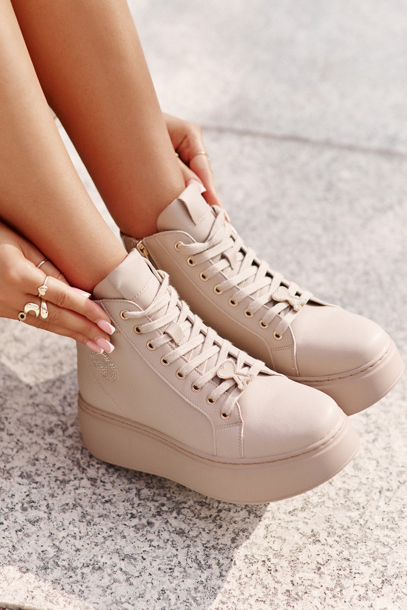 Groß Haut Sneakers Stilvollllschuhe Feminin mit einer Plattform Vinceza 66707 Beige