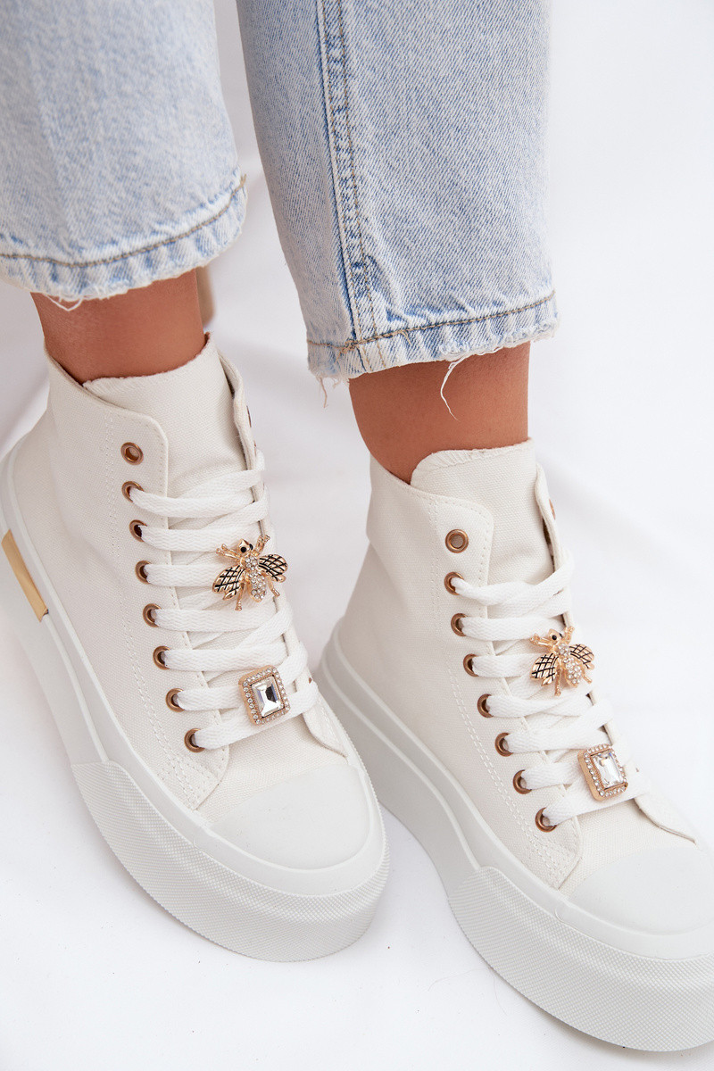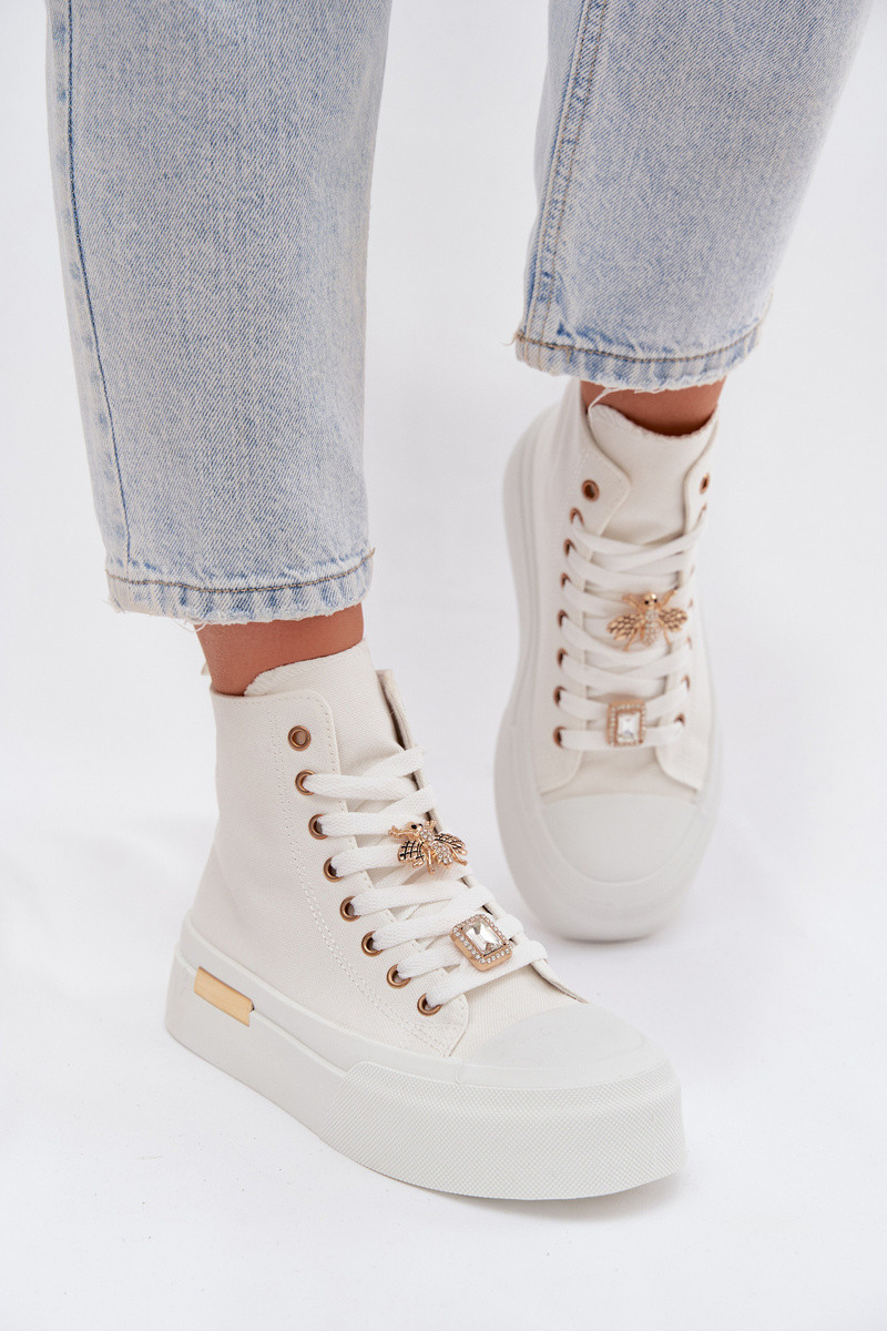 Weiße Freizeitschuhe mit Plateausohle und Verzierungen „Gracella"