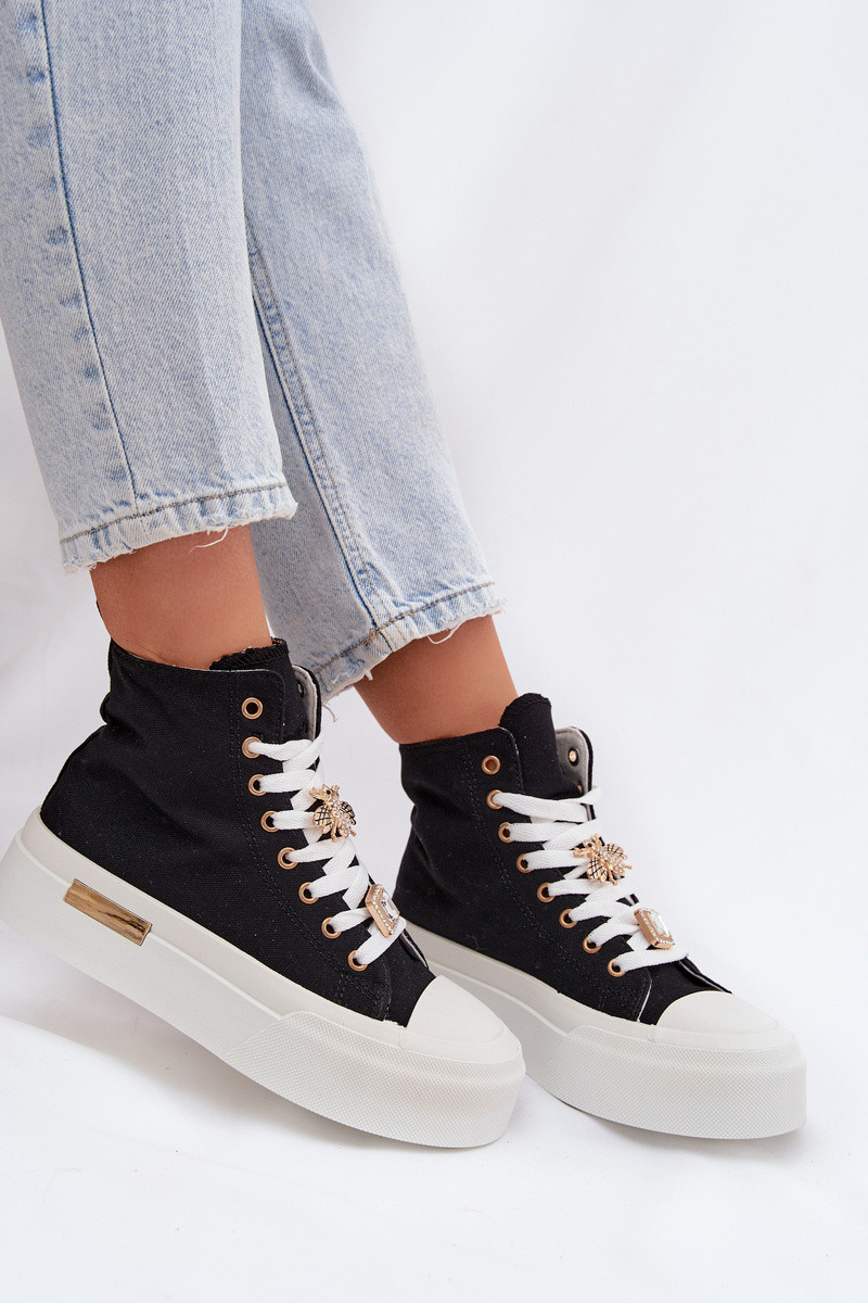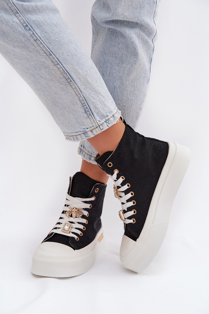 Schwarze Freizeitschuhe mit Plateausohle und Verzierungen „Gracella"