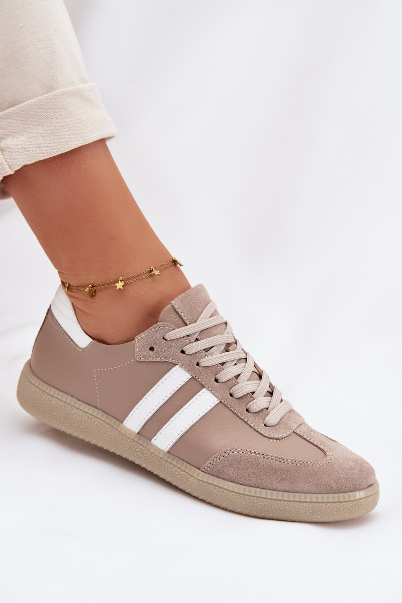 Zazoo N1068 Damen-Sneaker aus Kunstleder in Sandfarbe