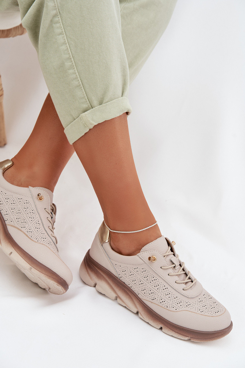 Leder Damen Sneakers mit Ażurowelementen Sergio Leone SP-002 in grau