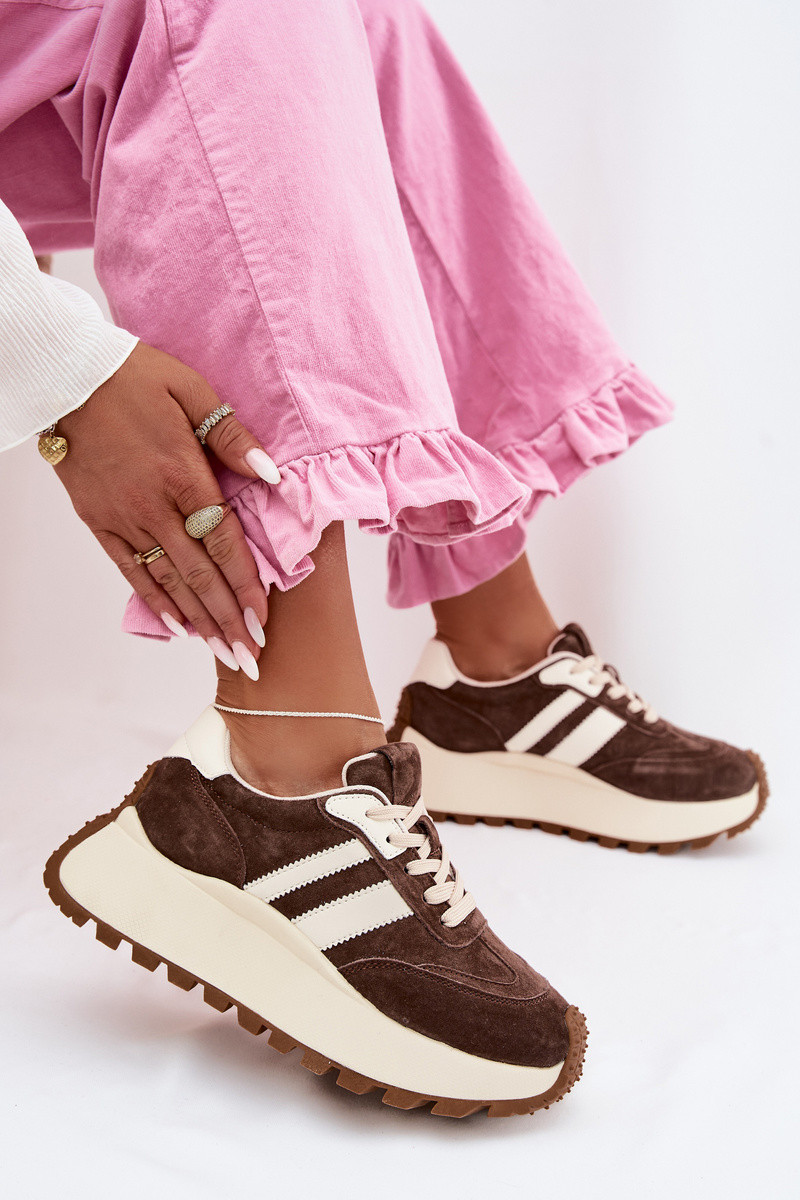 Sneakers Stilvollllschuhe aus INildleder mit einer Plattform D&A GR61-5986 CzekoladoZue
