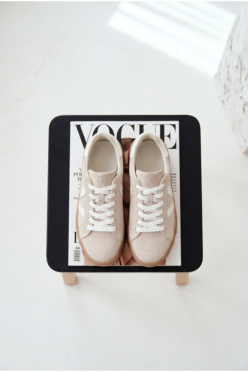 Damen-Sportschuhe aus echtem Wildleder mit Plateau Vinceza 79597 sandfarben