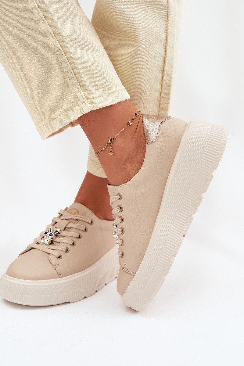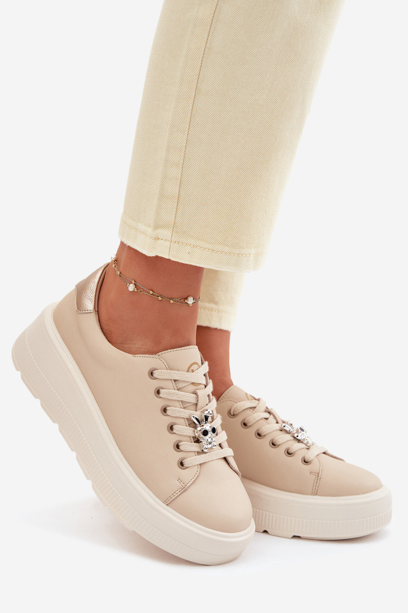 Haut Sneakers Stilvollllschuhe Feminin mit einer PlattformPrzypinką Vinceza 39973 Beige