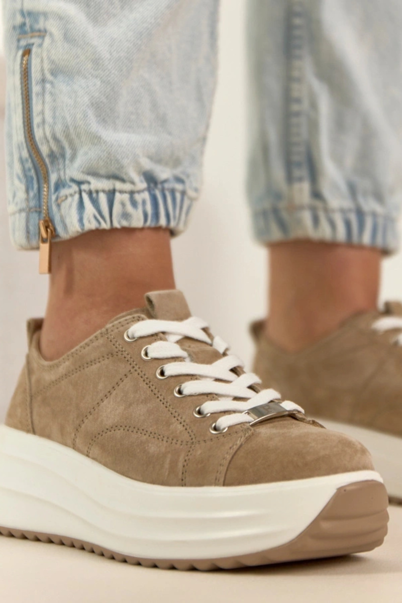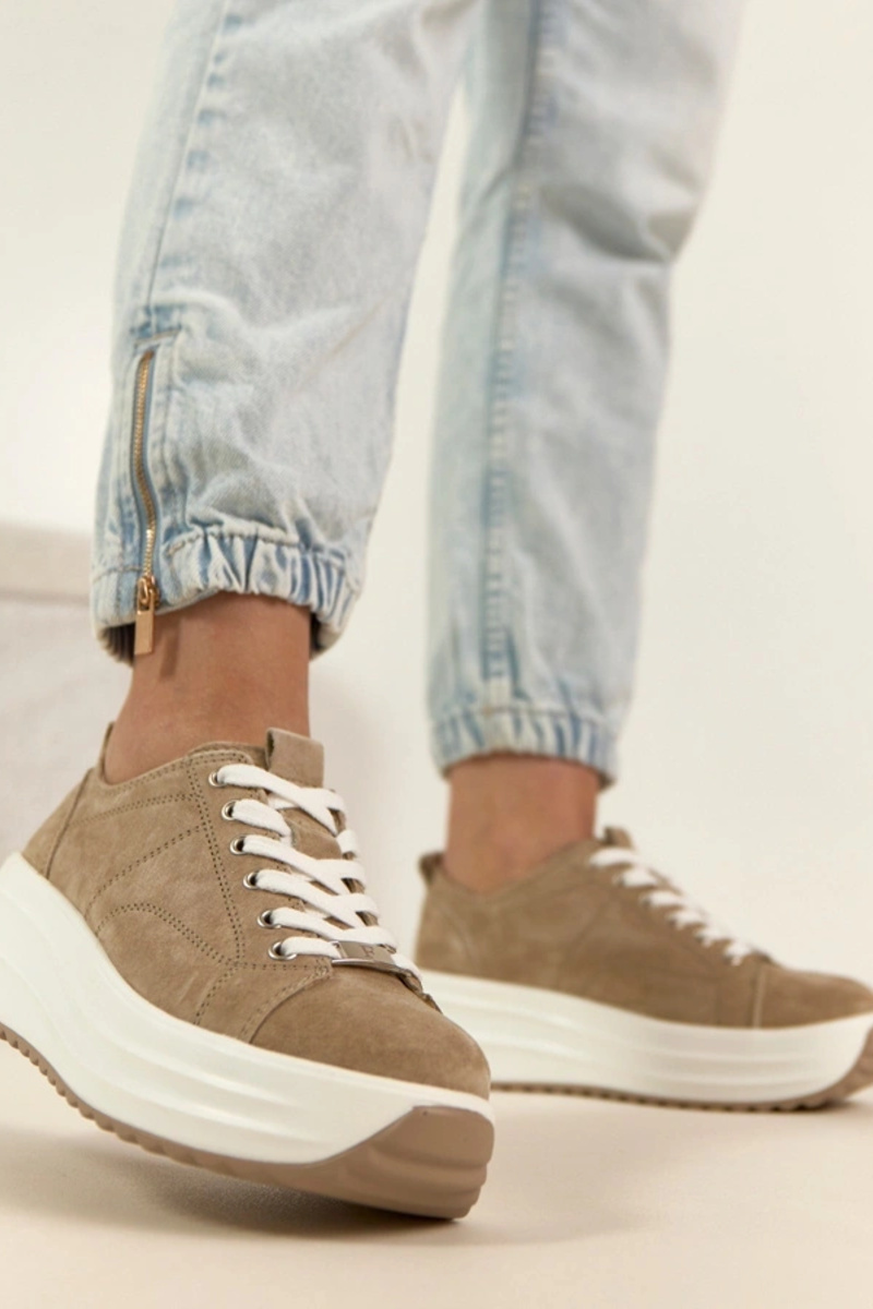 Sandfarbene Leder-Sneaker mit Plateau Filippo