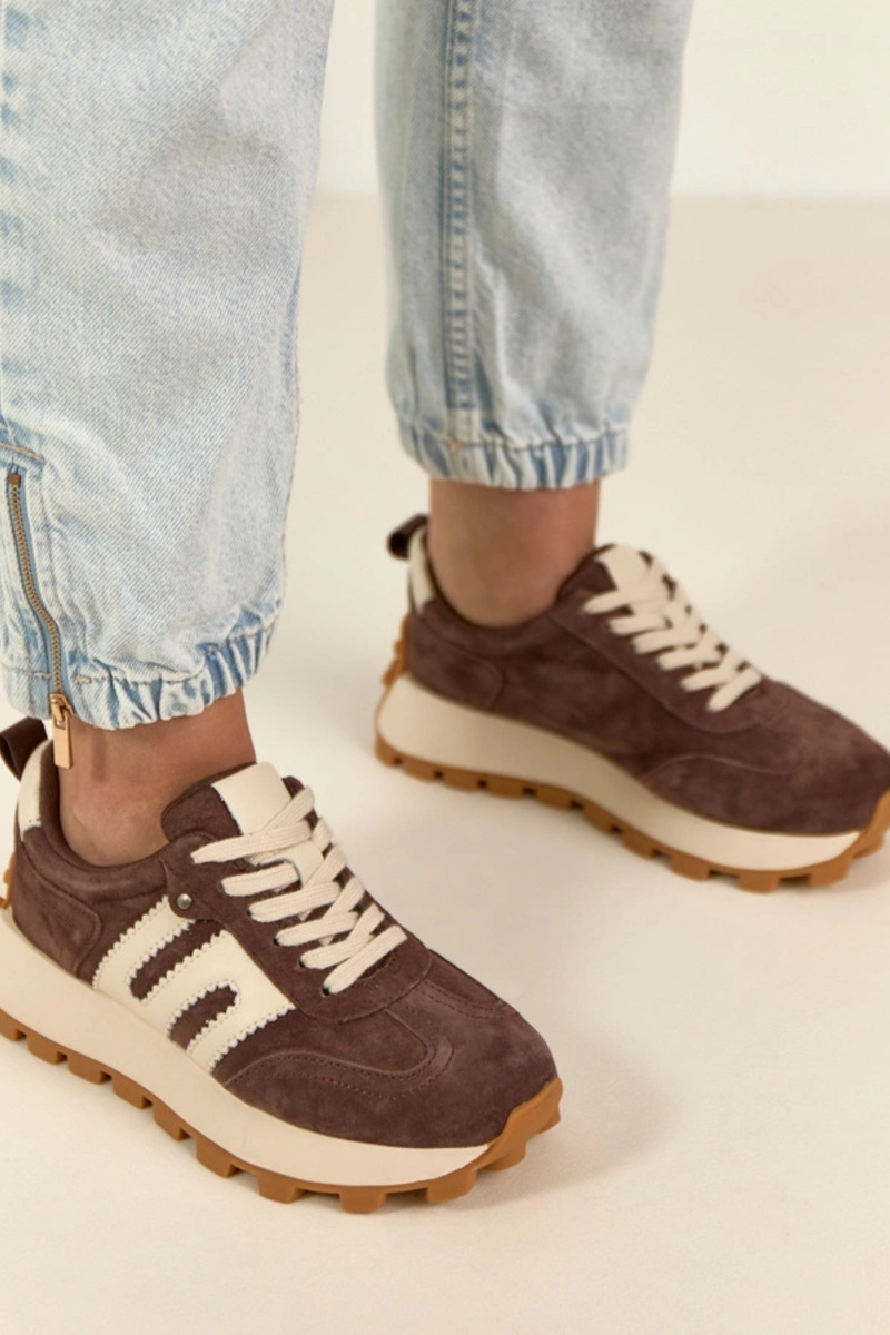 Schokoladenfarbene Leder-Sneaker mit Plateau Filippo