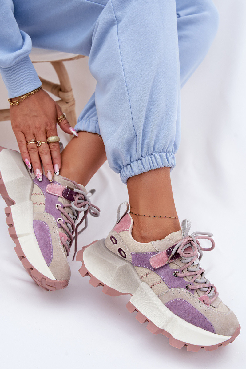 Haut aus INildleder Sneakers Stilvollllschuhe Feminin GOE TT2N4026 Violette Farbe