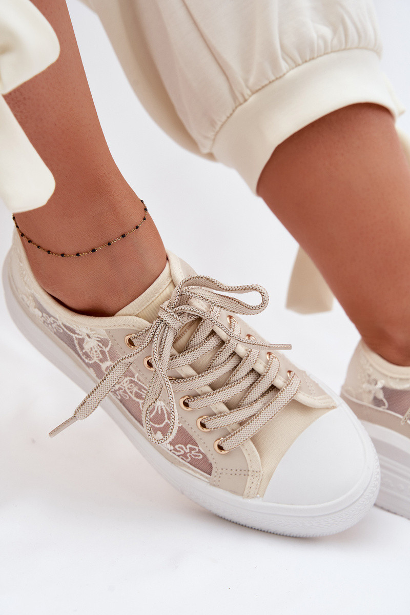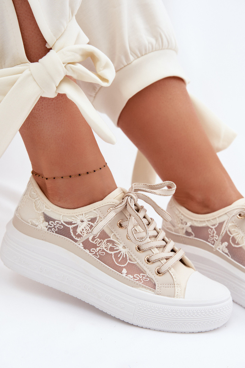 Lee Cooper LCIN-26-44-4481 sandfarbene Freizeitschuhe mit Schnürsenkeln und Plateausohle