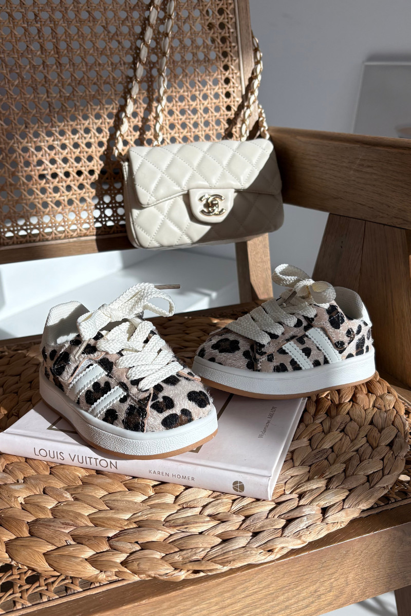 Kindersportschuhe Sneakers mit Leopardenfell-Muster in Sandfarbe, Amelle