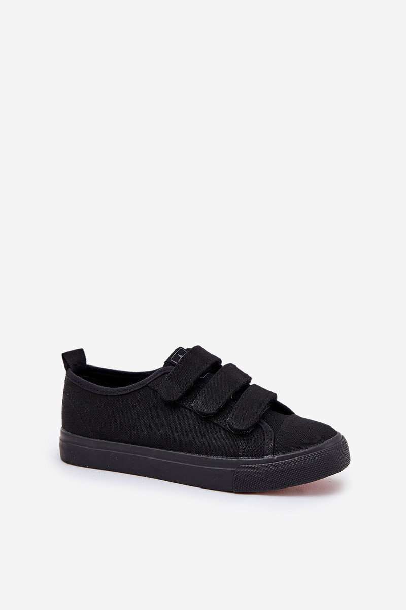 Jugend Turnschuhe mit flacher Sohle mit Klebeverschlüssen schZuarze Farbe Dilan
