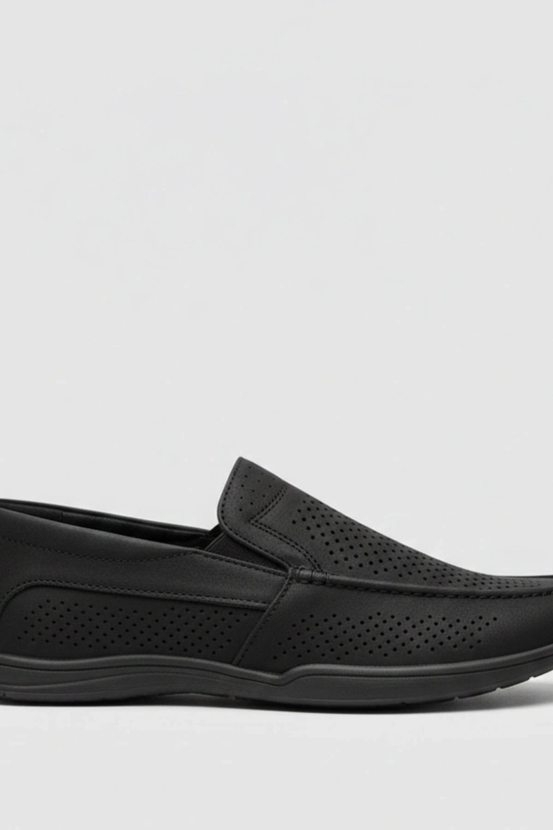 Schwarze perforierte Herren Mokassins Finn