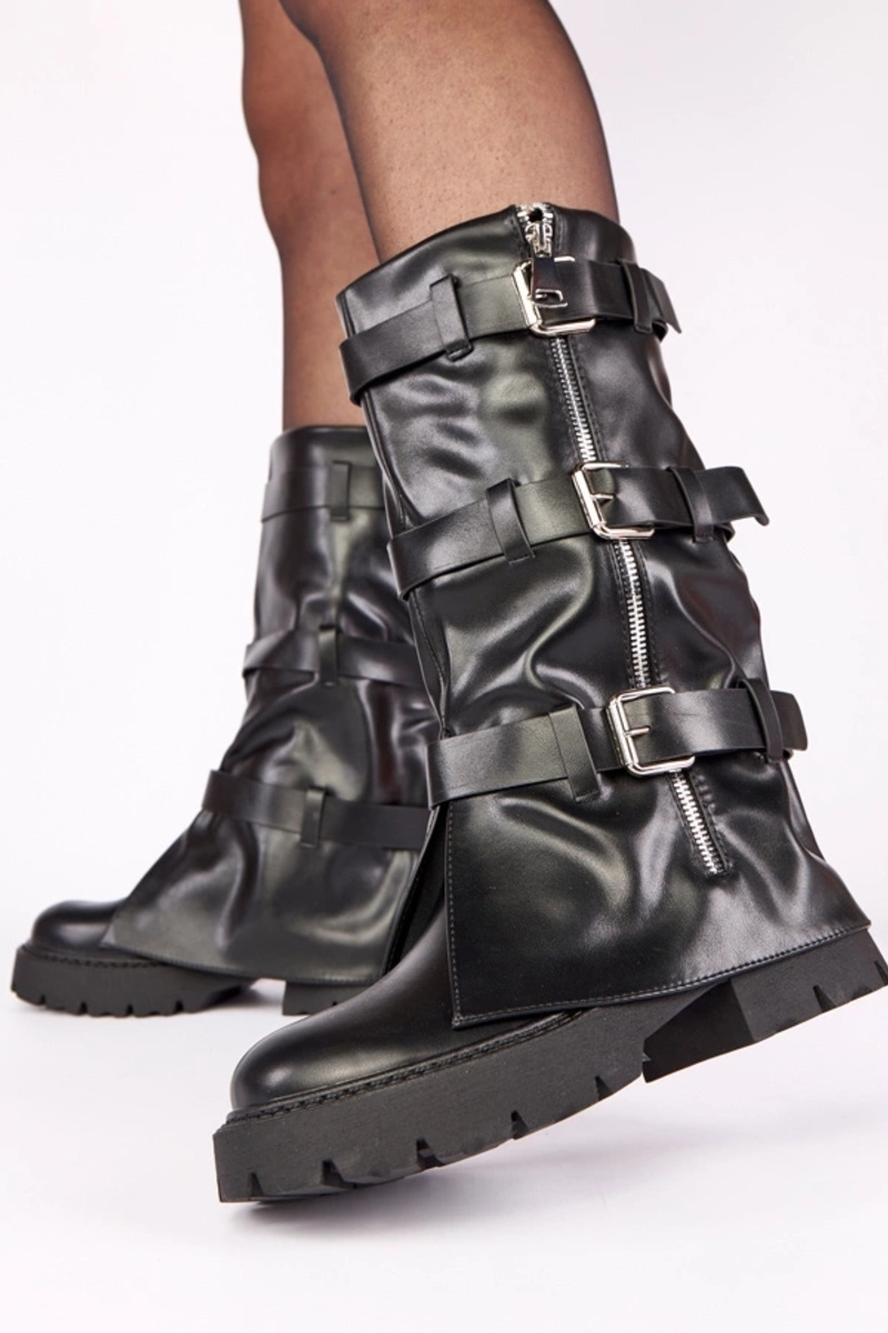 Schwarze Stiefel mit Plateau und umgeschlagenem Schaft Colina