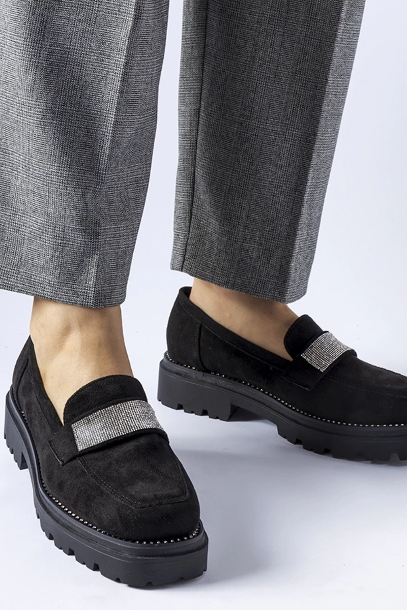 Schwarze Nicholls Kunstwildleder-Schuhe mit Zirkonia