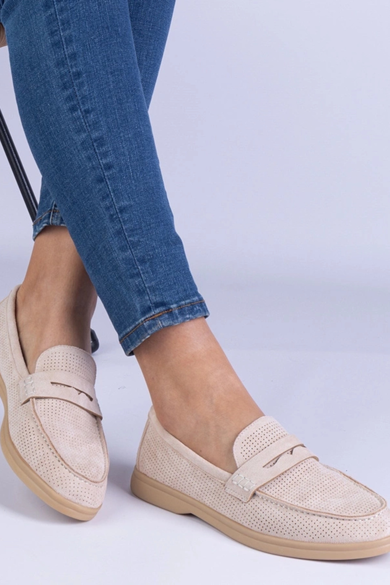 Beige klassische durchbrochene Mokassins aus Kunstwildleder von Argossa