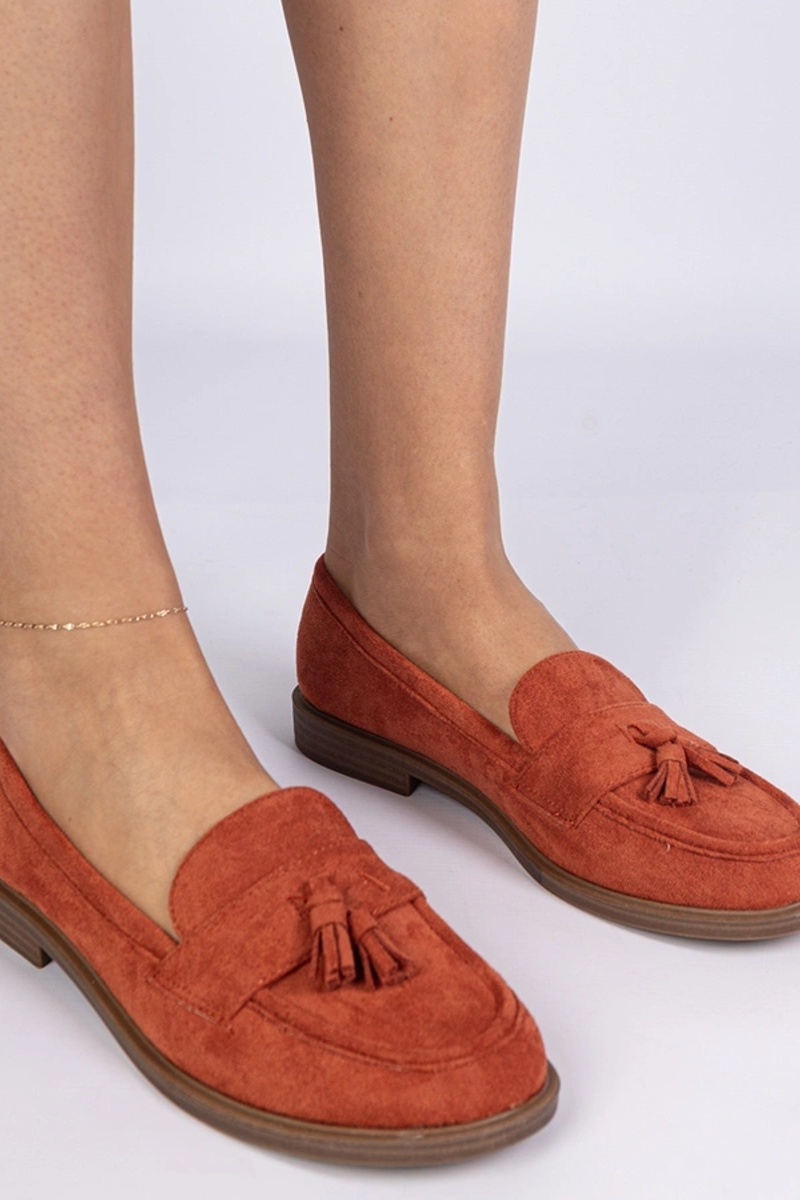 Orange Damenmokassins aus Kunstvelours mit Fransen Marimel