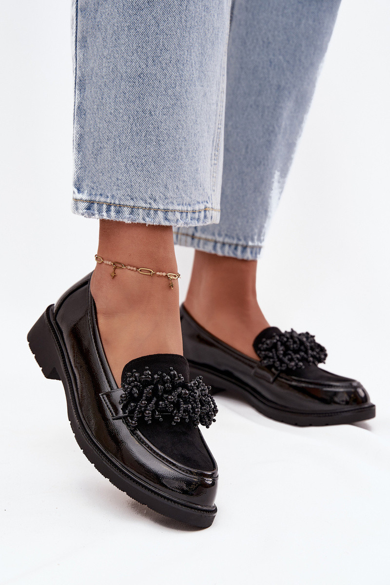 Feminin Mokassins mit Lackeffekt S.Barski HY52-369B schZuarze Farbe