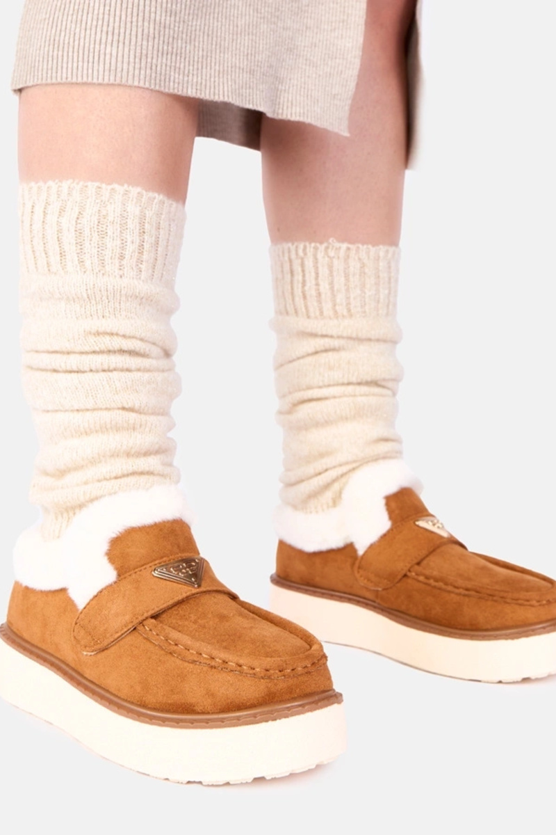 Braune Mokassins, warm gefüttert mit Pelz Loafy