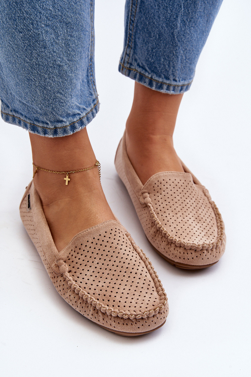 Feminin mit durchbrochenen Elementen Mokassins Beige Rasirna