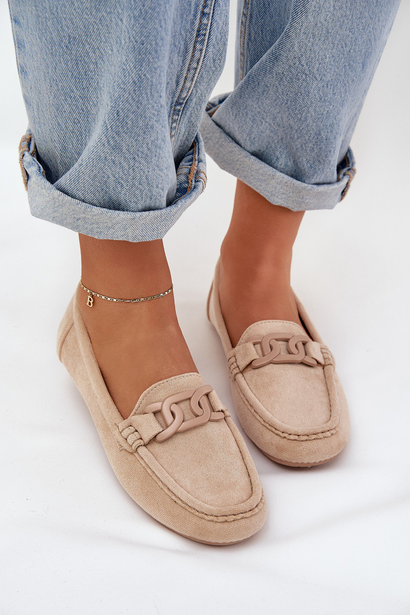 Damen Mokassins aus Kunstwildleder mit Ornamenten sandfarbene Farbe Seathra