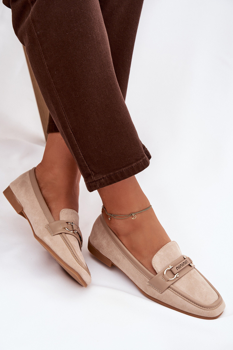 Damen sandfarbene Mokassins mit dekorativen Elementen „Evelora"