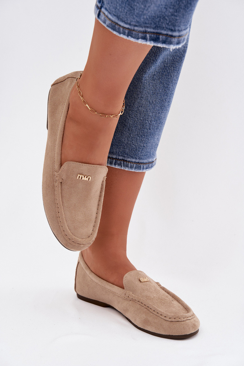 Mokassins für DamenKleinm goldene Farbem Detalem Beige Sarivelle