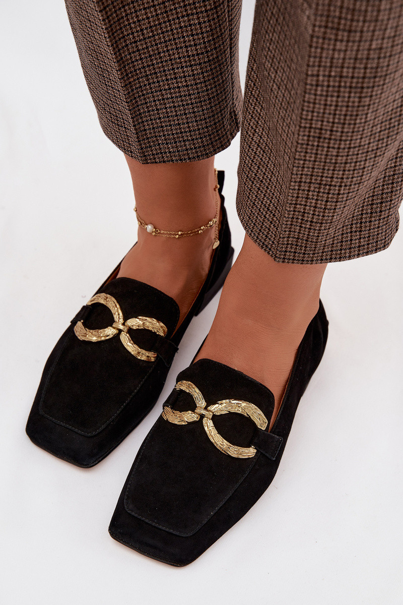 Mokassins für DamenErmöglichtturalnego aus INildlederu goldene Farbe Detal D&A CR61-3115 schZuarze Farbe