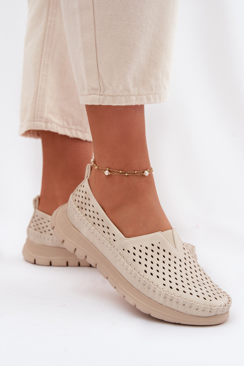mit durchbrochenen Elementen Mokassins für Damen Sergio Leone MK099H Beige-goldene Farbe