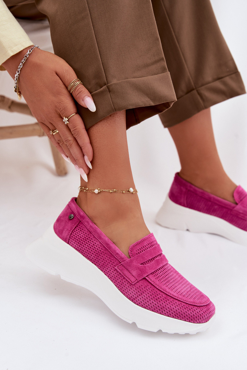 Damen-Mokassins aus echtem Wildleder mit Plateau Vinceza 79626 rosa