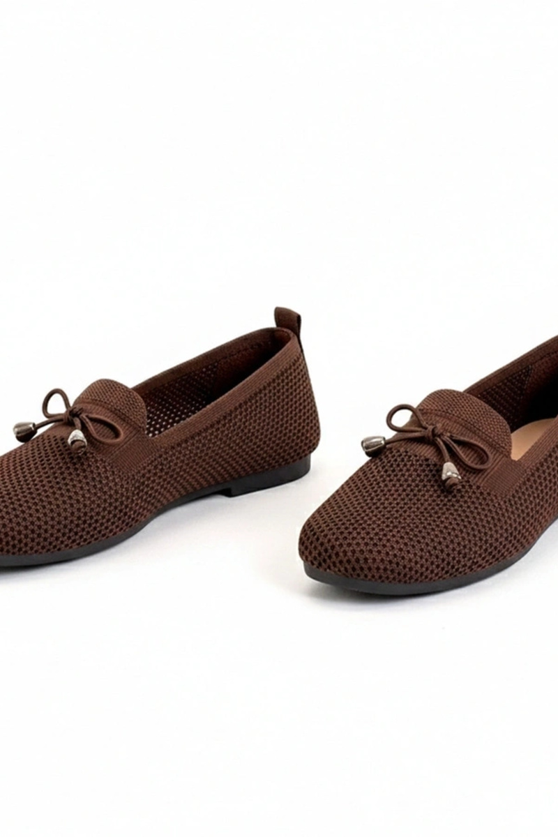 Braune Stoff-Mokassins mit Schleife Aubrey