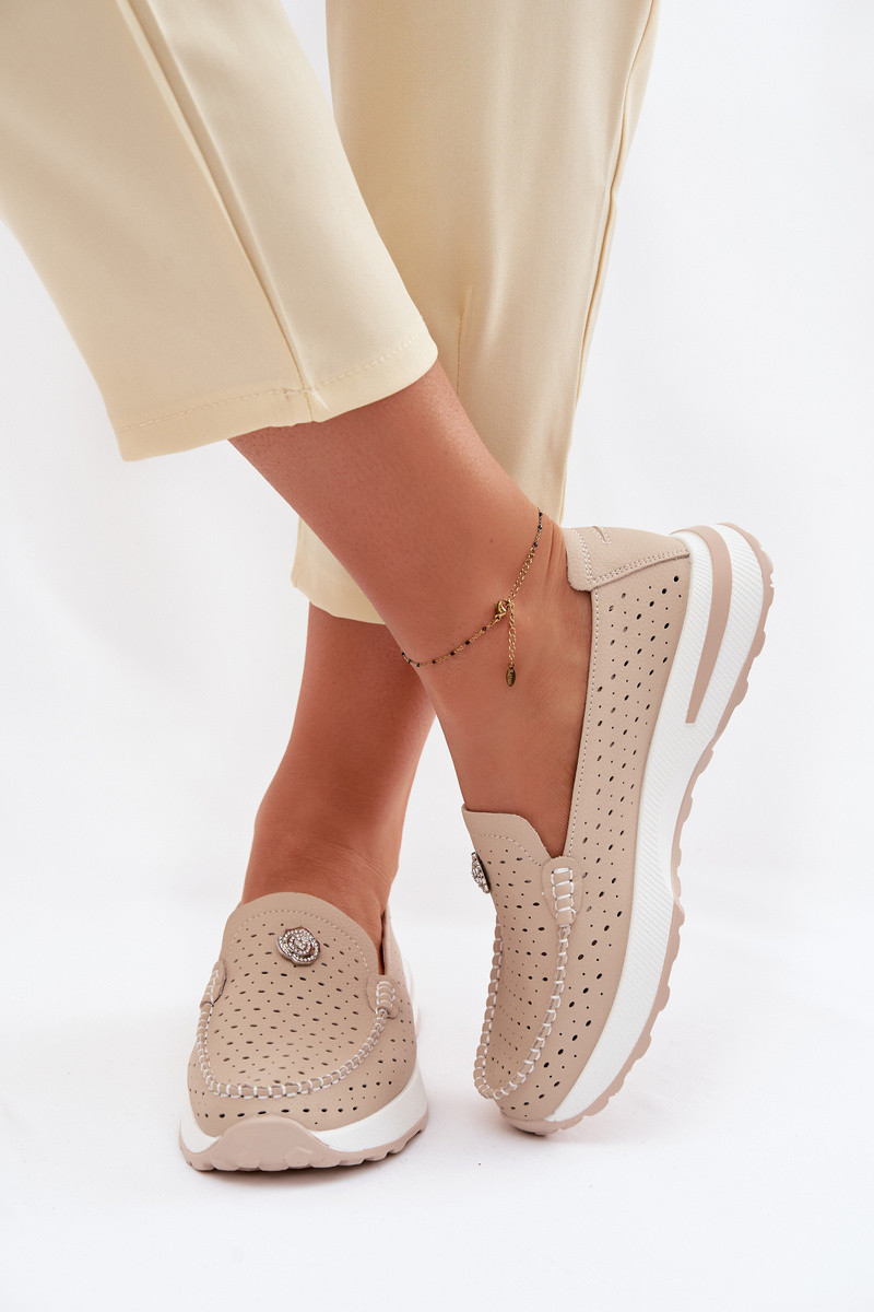 mit durchbrochenen Elementen Mokassins für DamenErmöglichtturalnej Skóry Beige Kemela