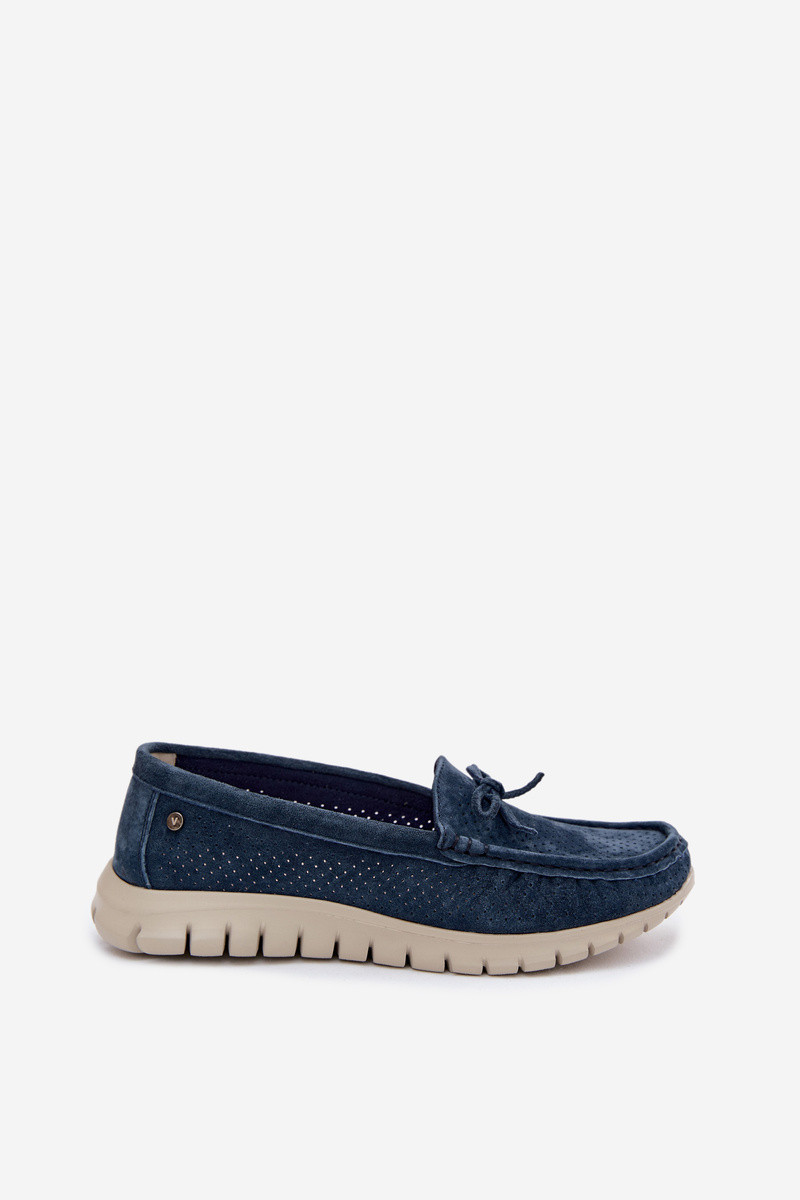 Mokassins für DamenErmöglichtturalnego aus INildlederu mit Bändern Vinceza 95401 Dunkelblau