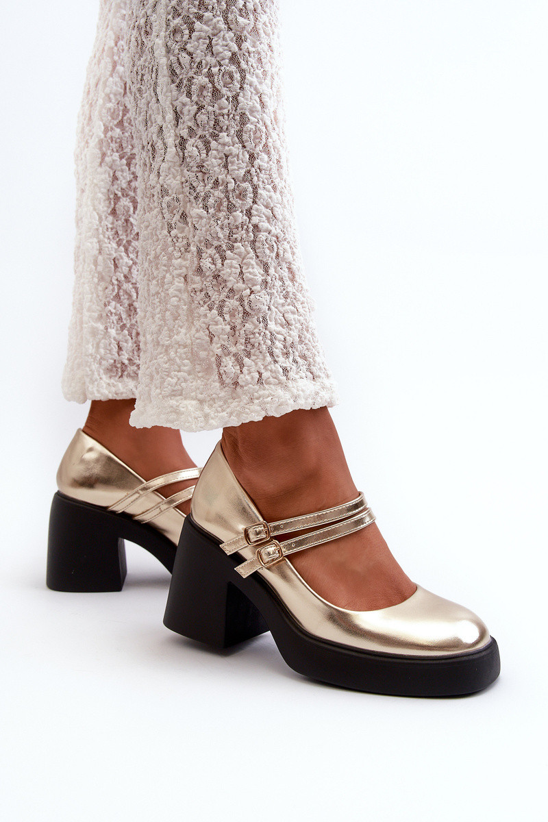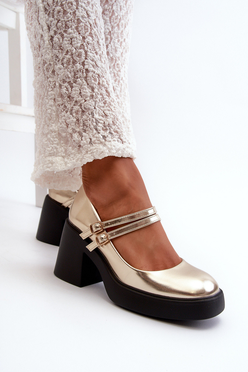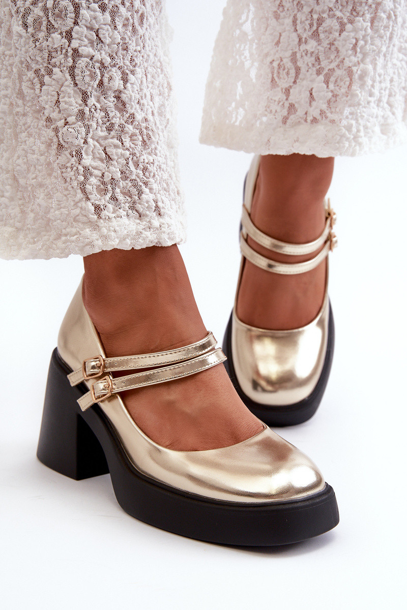 Kunstleder Schuhe mit breitem Absatz in gold Halmina