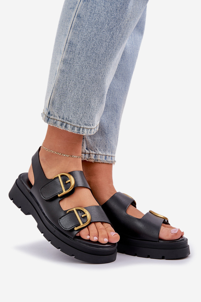 Damen-Sandalen aus Kunstleder mit Schnallen in schwarzer Farbe Vulinea