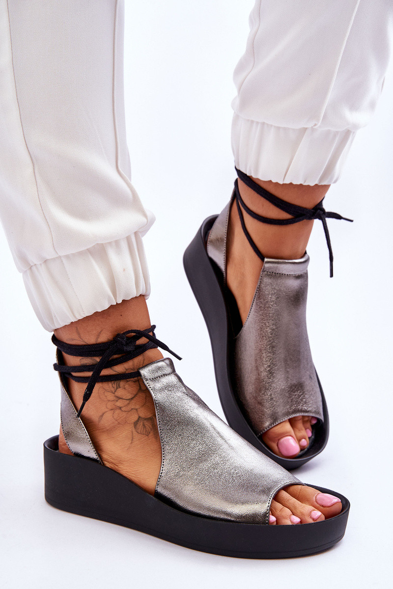 Leder-Plateau-Sandalen Nicole 2743/063 in Grau-Schwarz