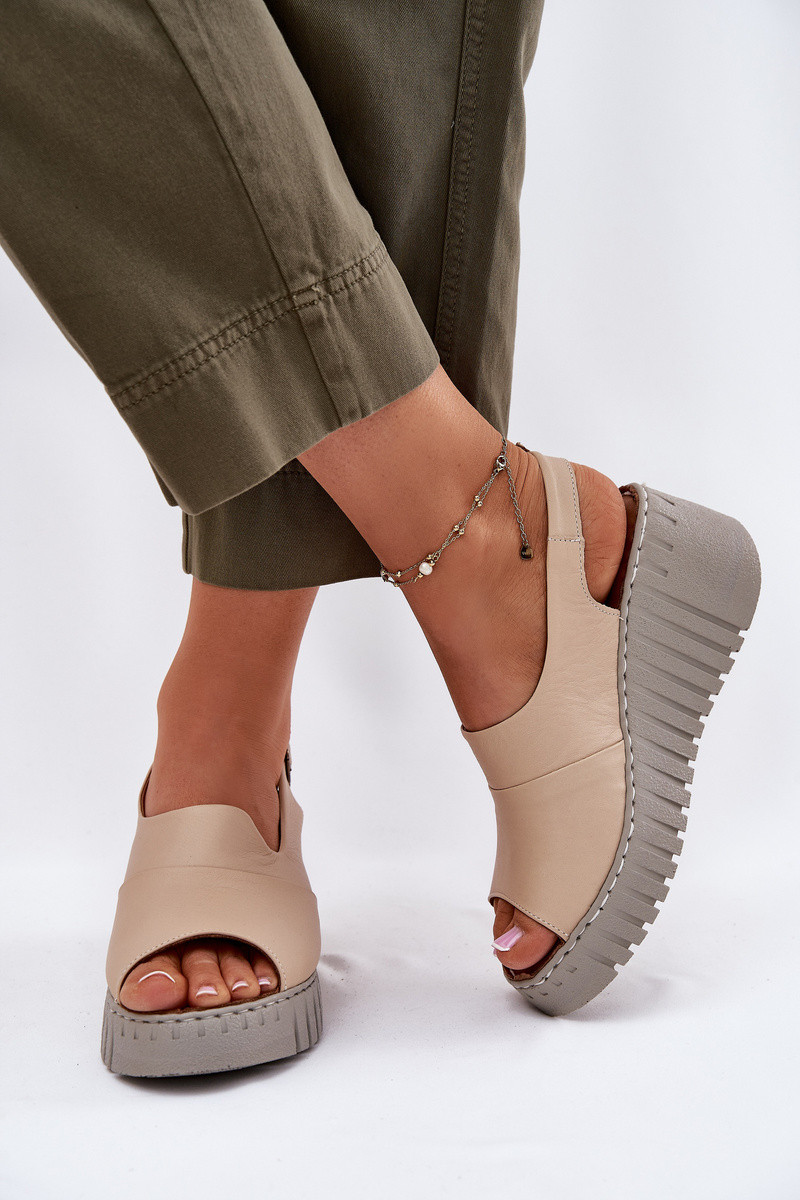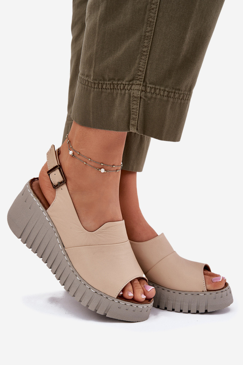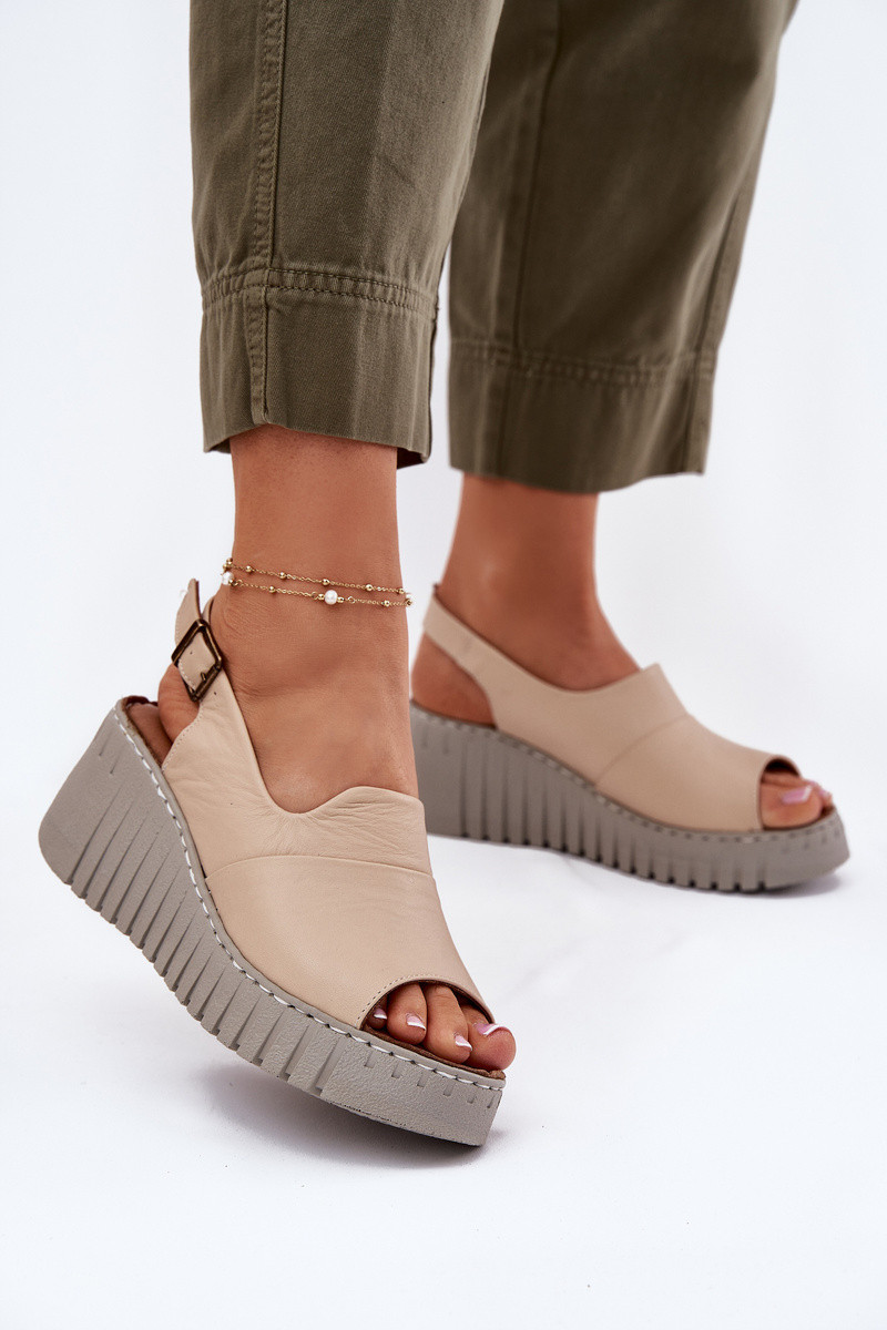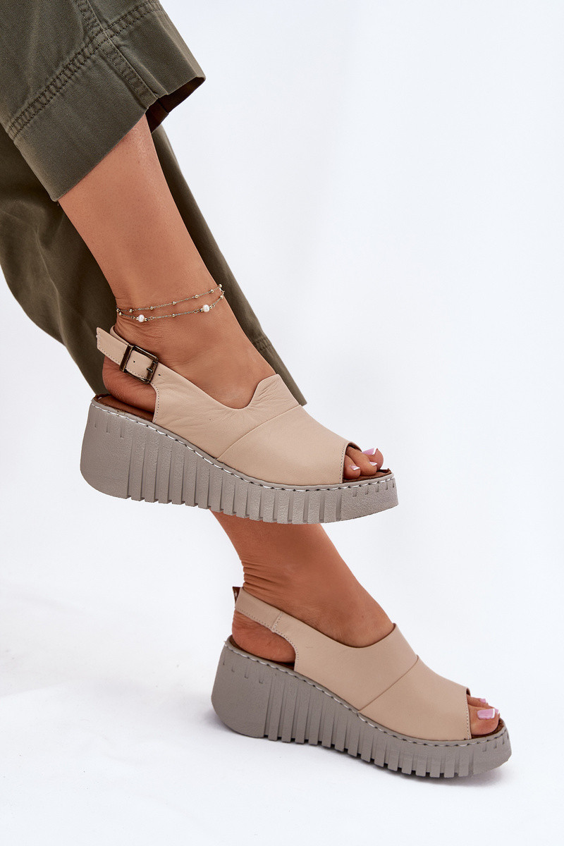 DamensandalenErmöglichtturalnej Skóry Auf einem Keil Artiker 56C0957 Beige