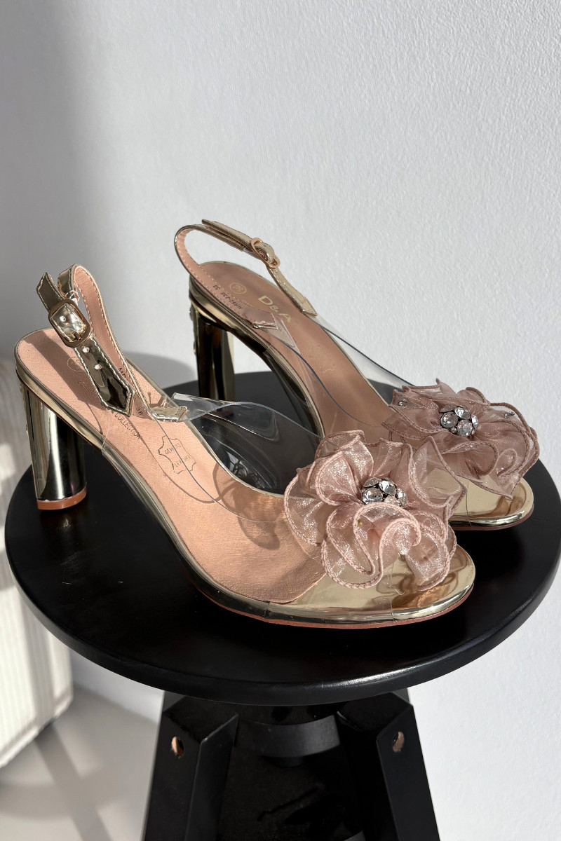 Sandalen mit Absätzen mit Ornamenten I Kryształkami D&A MR52-236 goldene Farbe