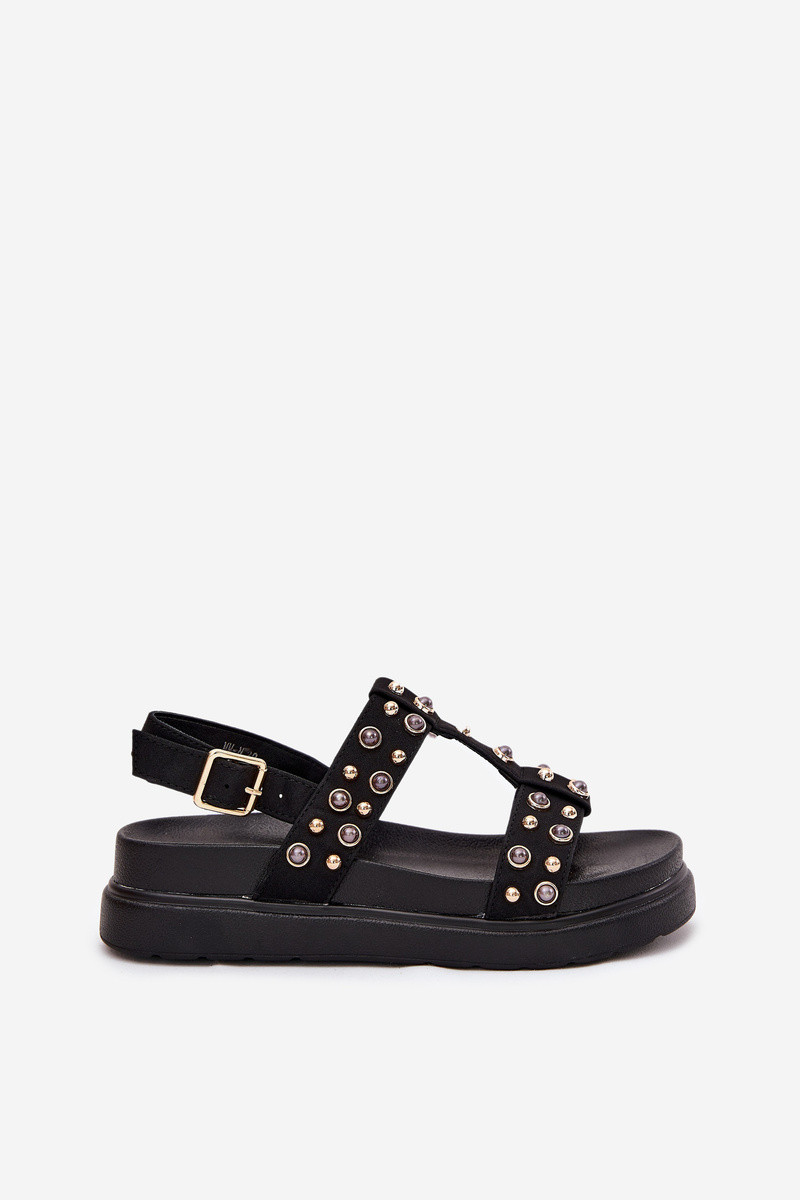 Dekoriert Damensandalen mit einer Plattform schZuarze Farbe Es mussilisa