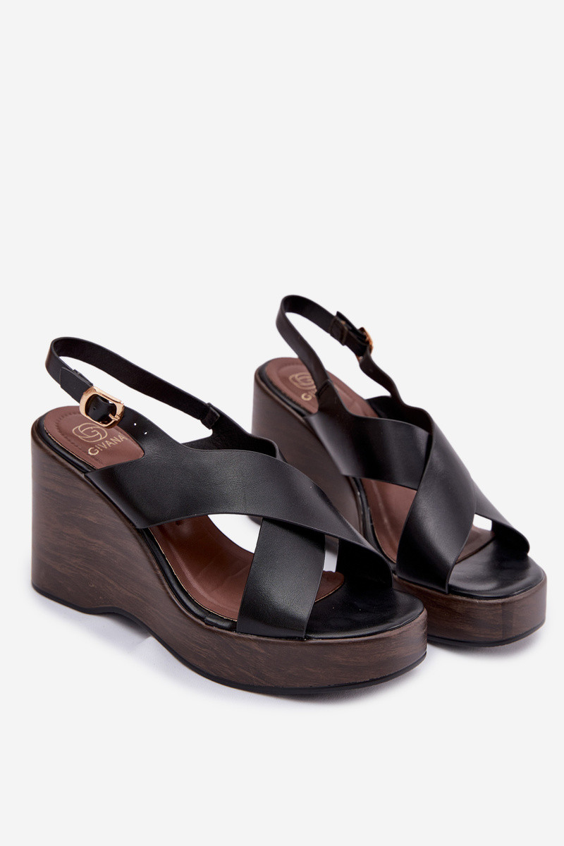 Damenplateausandalen aus Kunstleder, schwarze Farbe Janivra