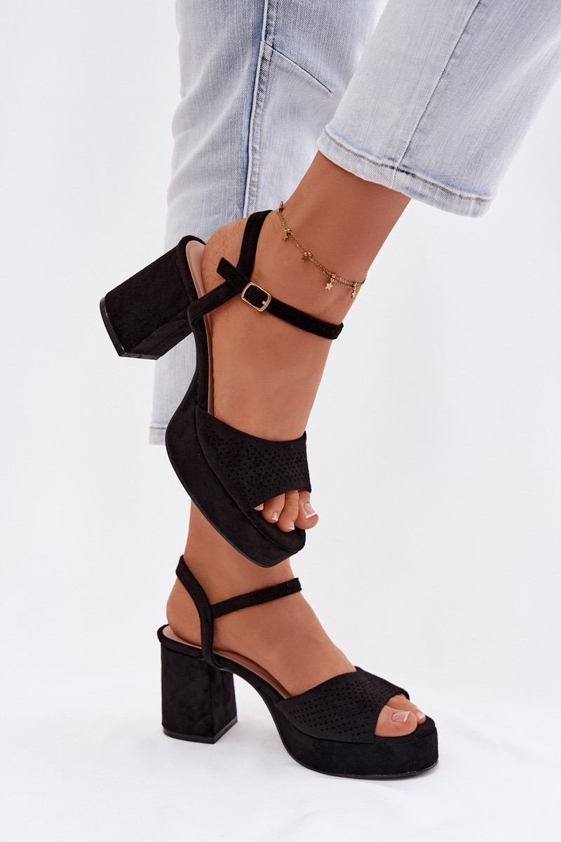 Damen High Heels Sandalen aus Kunstwildleder in schwarzer Iserelle