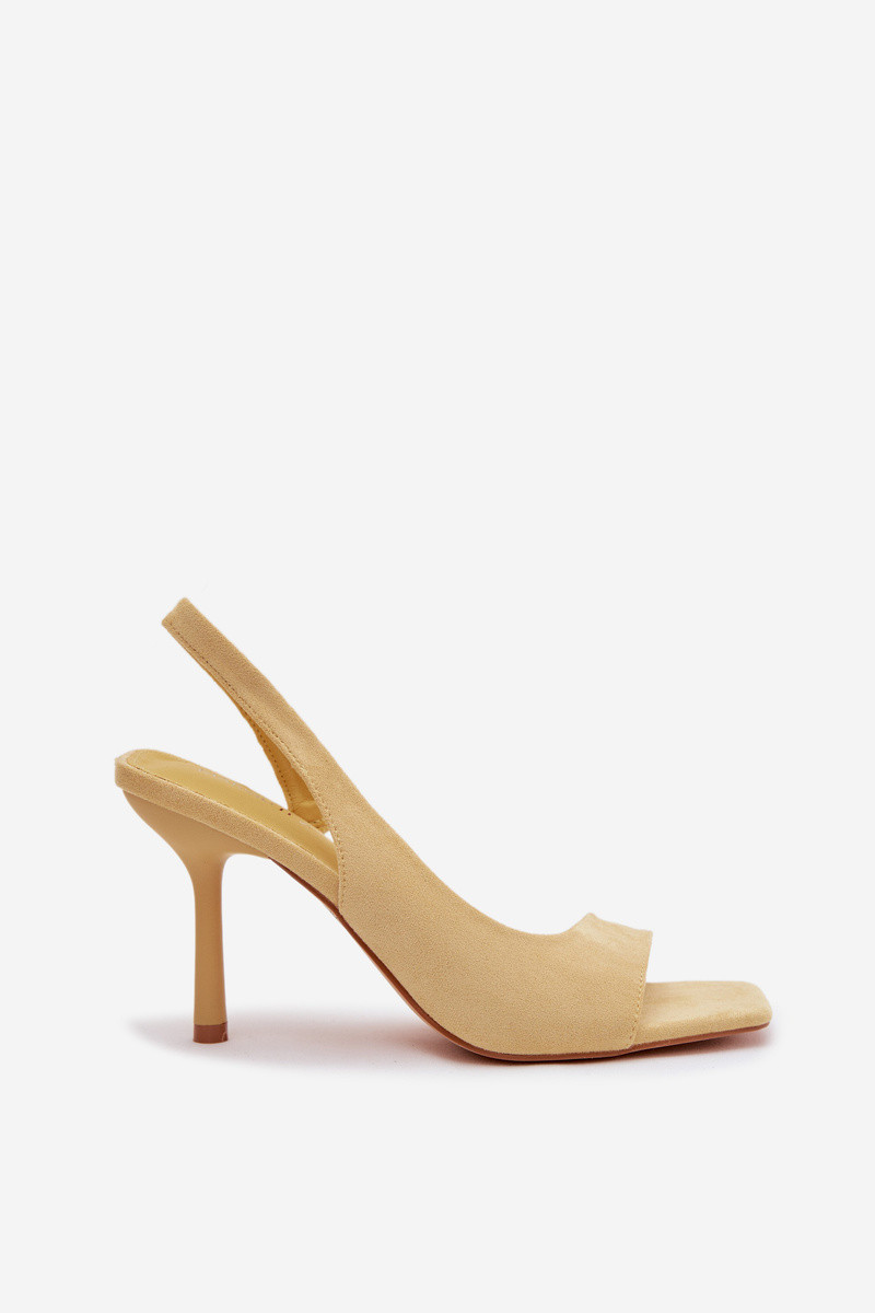 Calvoria Damen Sandalen mit dünnen Absätzen aus Kunstwildleder in Gelb
