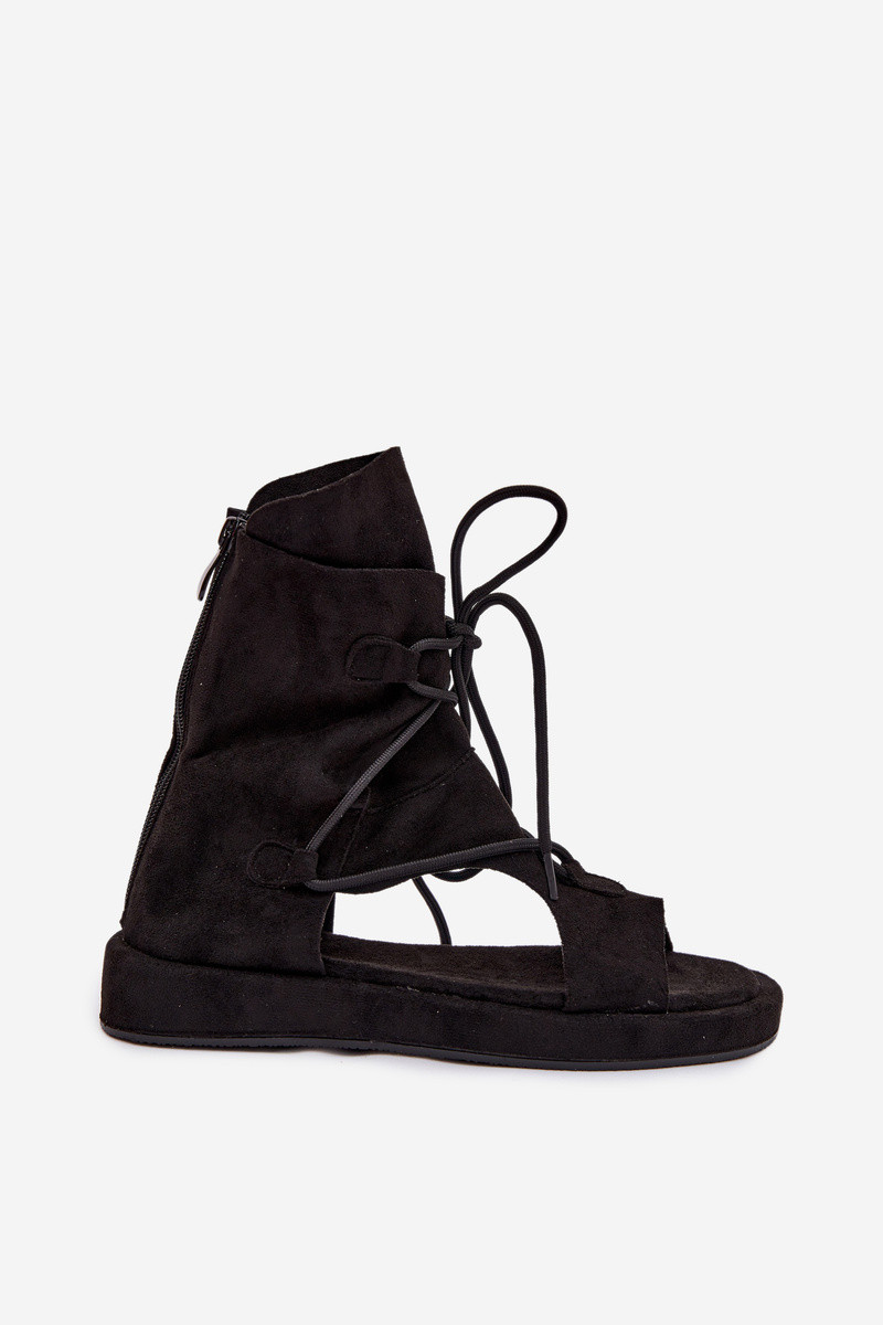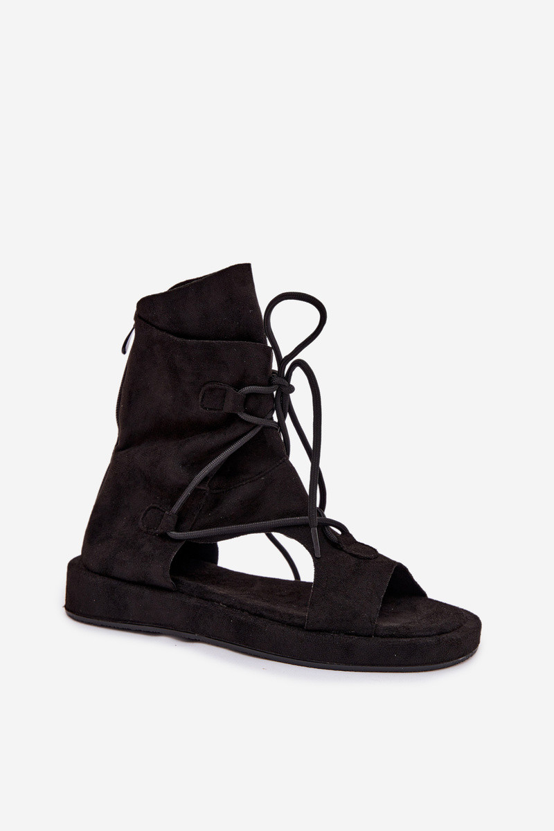 Damenveloursandalen mit Schaft und Schnürsenkeln schwarz Ferlisse