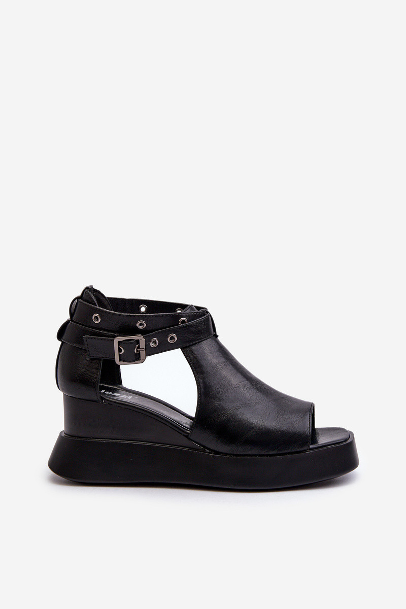 Damensandalen mit einer Plattform I Koturnie aus Öko-Leder schZuarze Farbe Hloeli