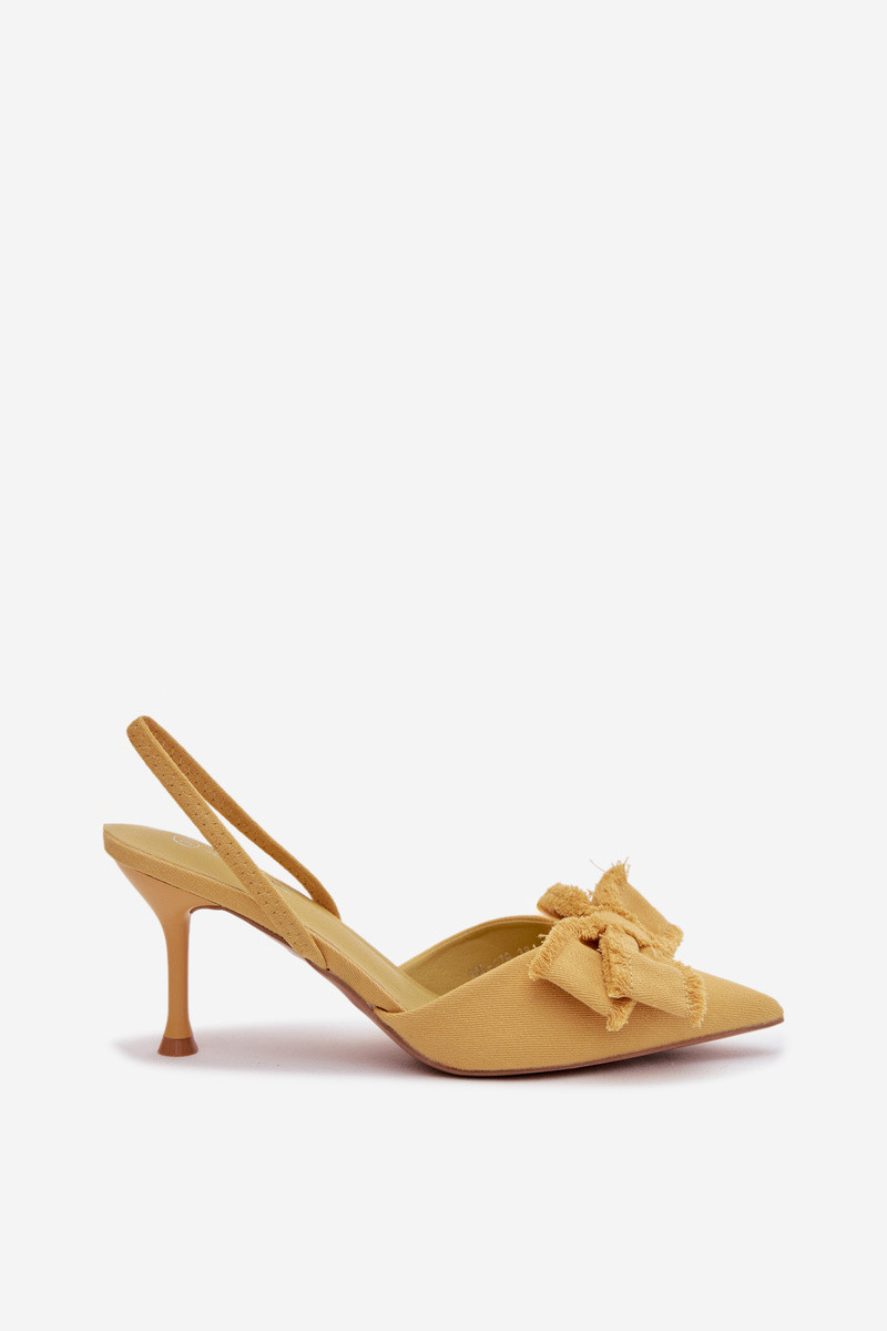 Damensandalen mit dünnen Absätzen mit Bändern gelbe Farbe Hestia