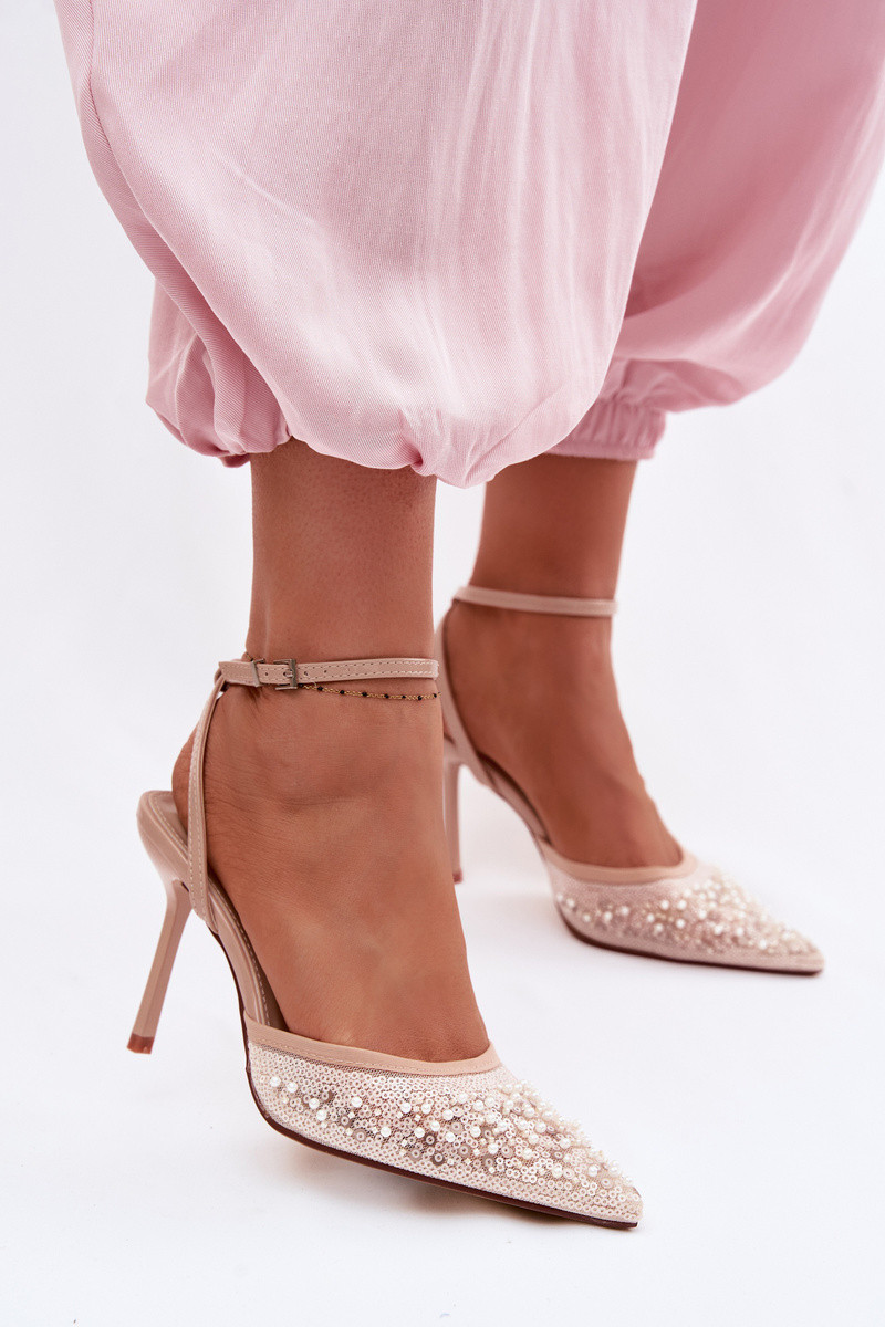 Damensandalen mit dünnen Absätzen Mit Glitzer verziert I Korallenfarbeikami Beige Nedira