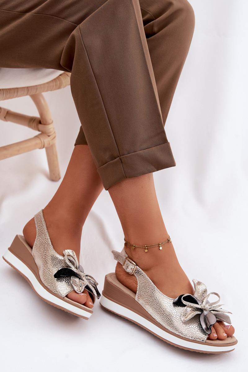 Leder Plateau Sandalen mit Ornamenten S.Barski GR61-5988 goldfarben