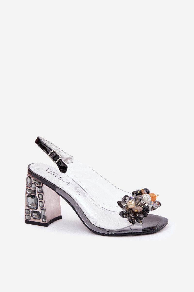 Transparente Sandalen mit Absätzen und glitzernden Akzenten Vinceza 70121 in Schwarz