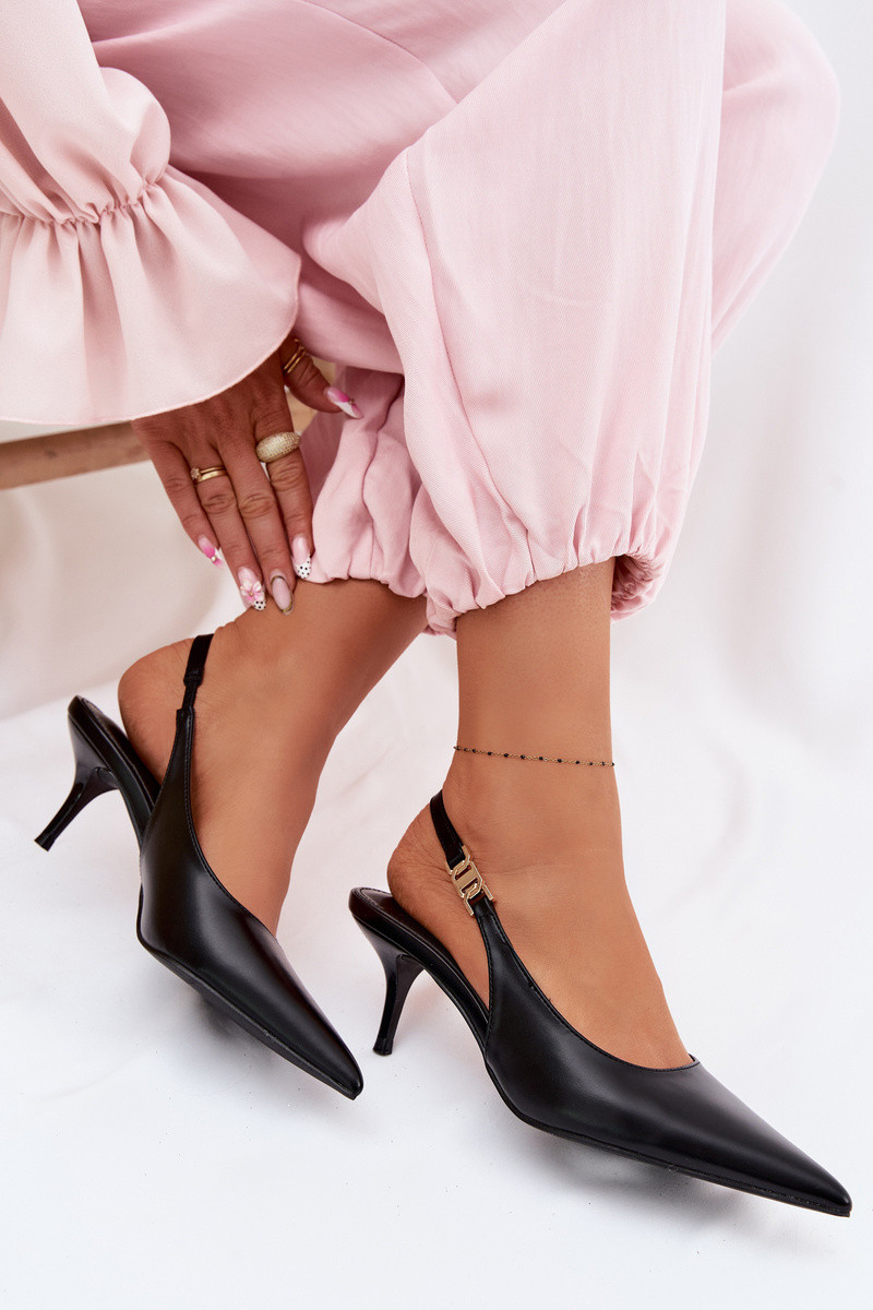 Damen schwarze Sandalen aus Kunstleder mit schmalen Absätzen Jelissey