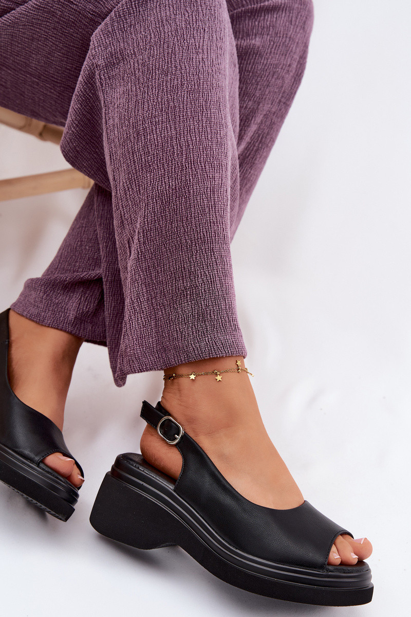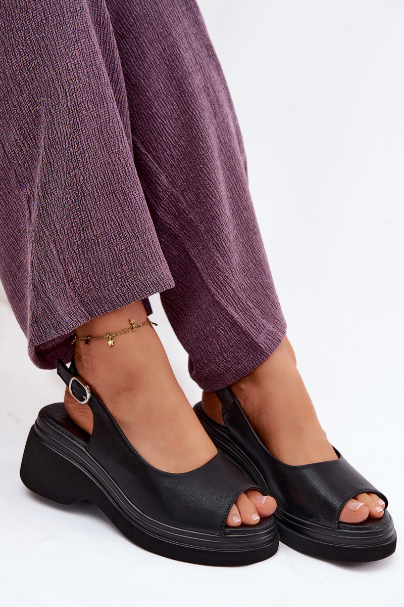 Leder-Platformsandalen Vinceza 66936, schwarz
